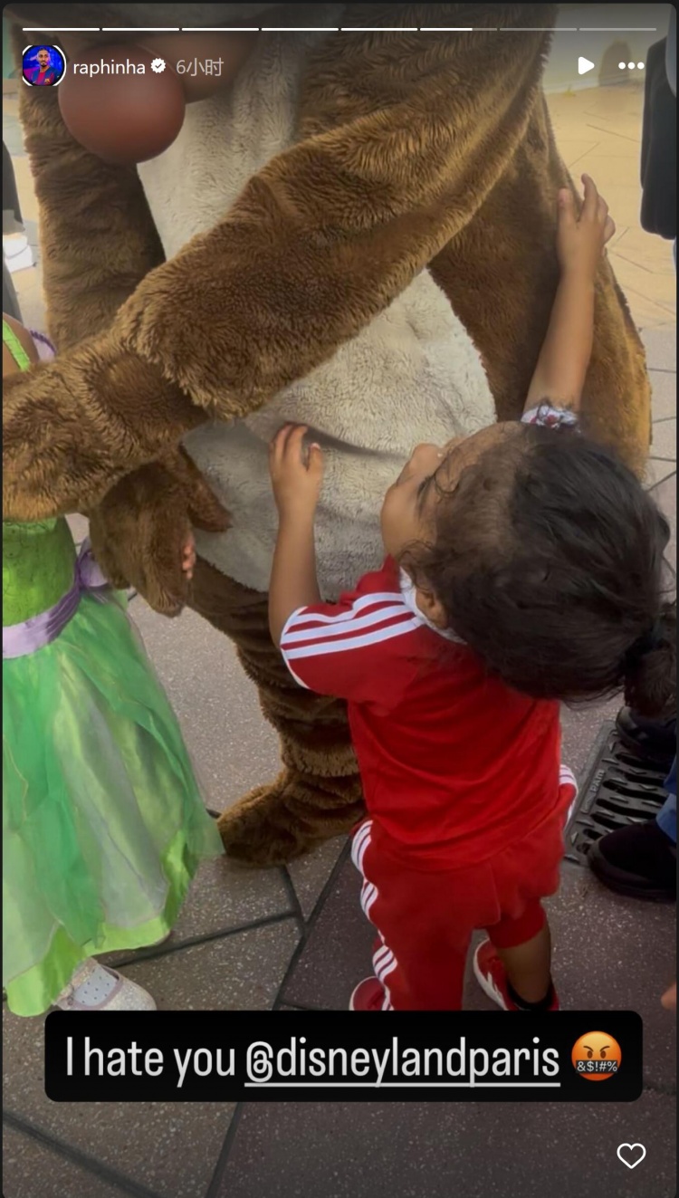 9月6日讯 巴西国家队/巴萨球员拉菲尼亚的孩子去巴黎迪士尼乐园游览,受到了不友善的对待,当这个孩子想和一名装扮成童话人物的迪士尼员工互动时,被对方无视。