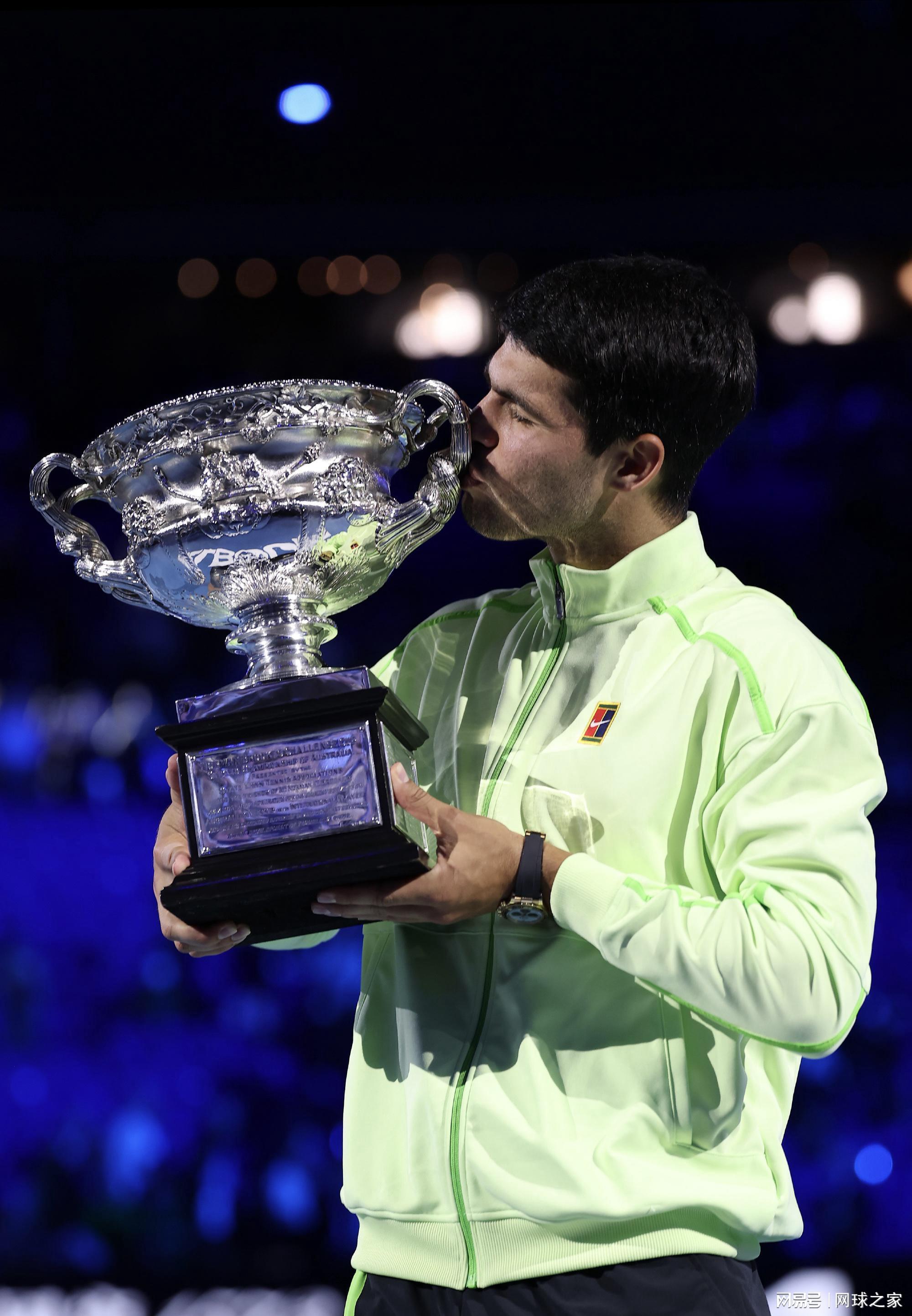 罗德·拉沃尔球场那标志性的蓝色硬地,在墨尔本夏夜的聚光灯下泛着耀眼的光泽。2026年2月1日的这个夜晚,网坛历史在这里被重新书写——当阿尔卡拉斯那记正手直线穿越如离弦之箭般划过球网,德约科维奇最后的防守化为徒劳的伸展,22岁的西班牙天才躺倒在地,双手掩面。一场2-6/6-2/6-3/7-5的逆转胜利,不仅为他带来职业生涯首座澳网冠军奖杯,更以22岁272天的年纪,打破了尘封87年的纪录,成为男子网坛历史上最年轻的全满贯得主。